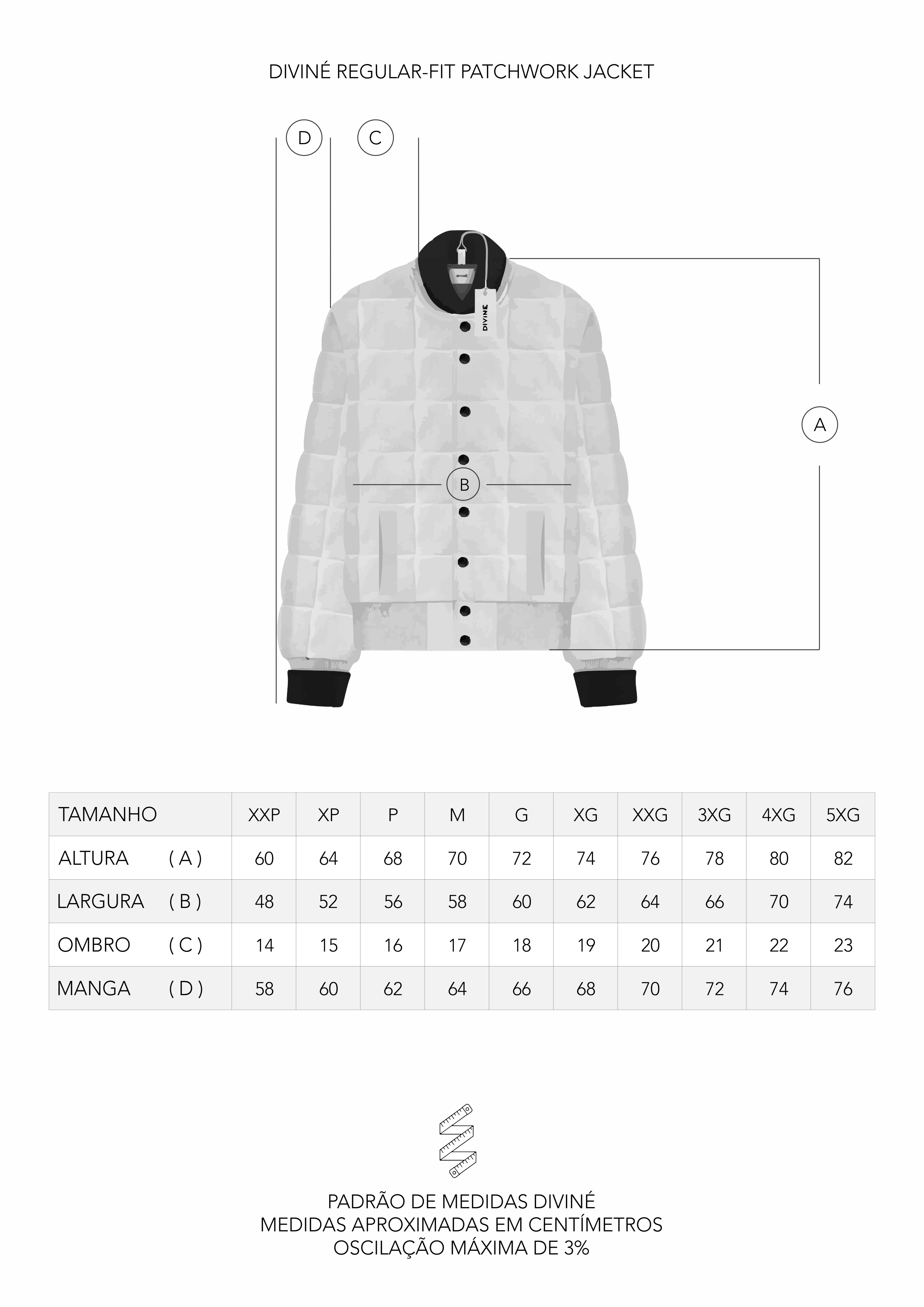 Altura/Largura/Ombro/Comprimento Manga/Barra Manga